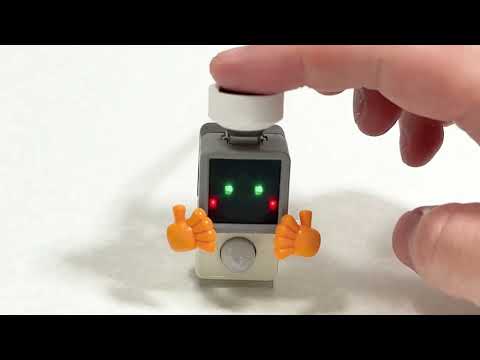 人が目の前に来ると顔を出しておじぎをします。PlatformIO 環境でコンパイルする場合は環境をenv:greetingに変更してください。