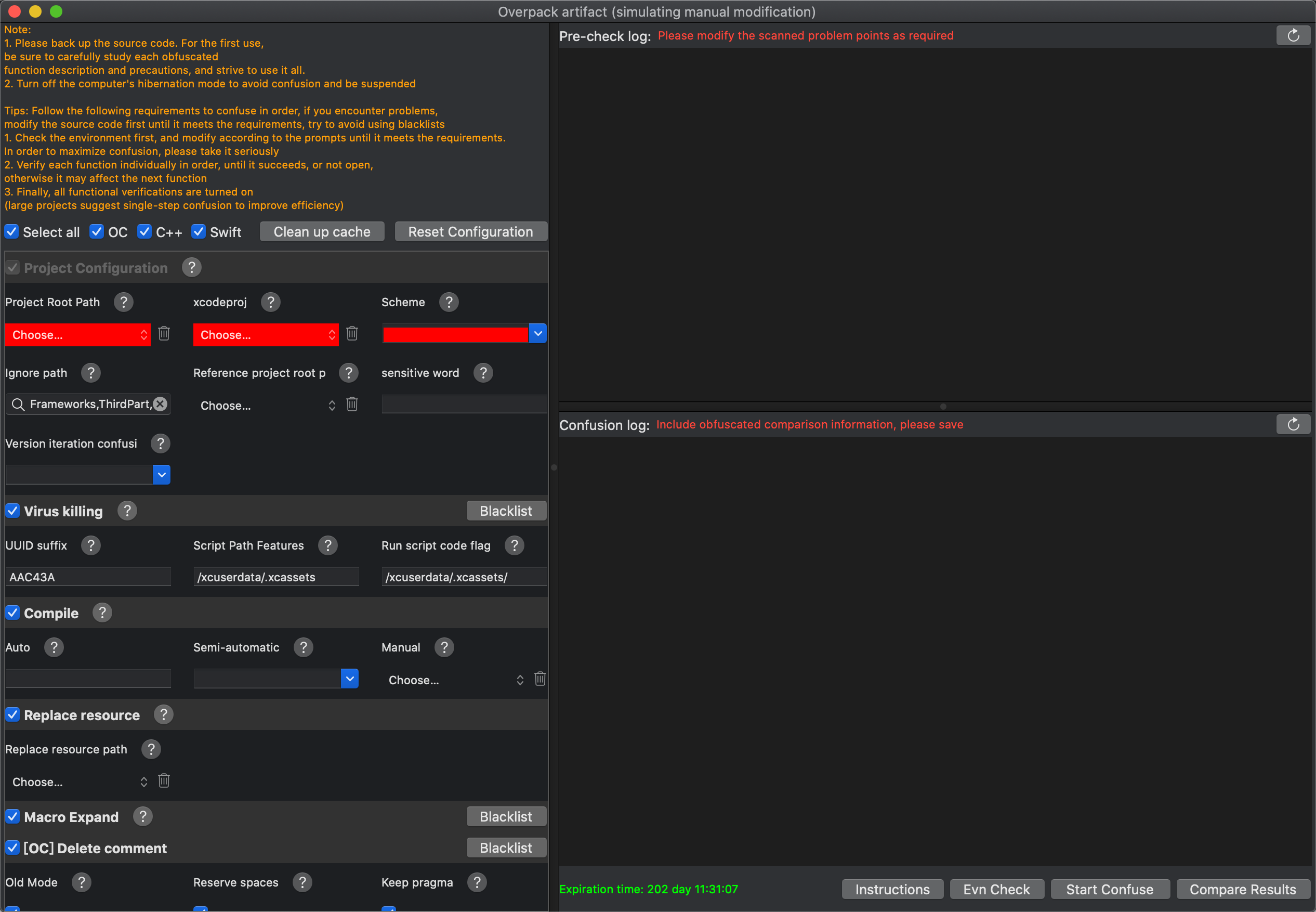 confuse is a confusion tool that simulates manual development as much as possible, imitates some functions of Xcode, and avoids machine core 4.3, 2.1, 2.3.1, account surveys, etc.