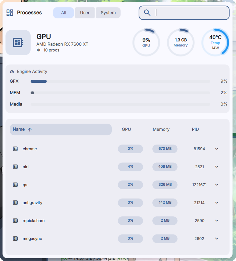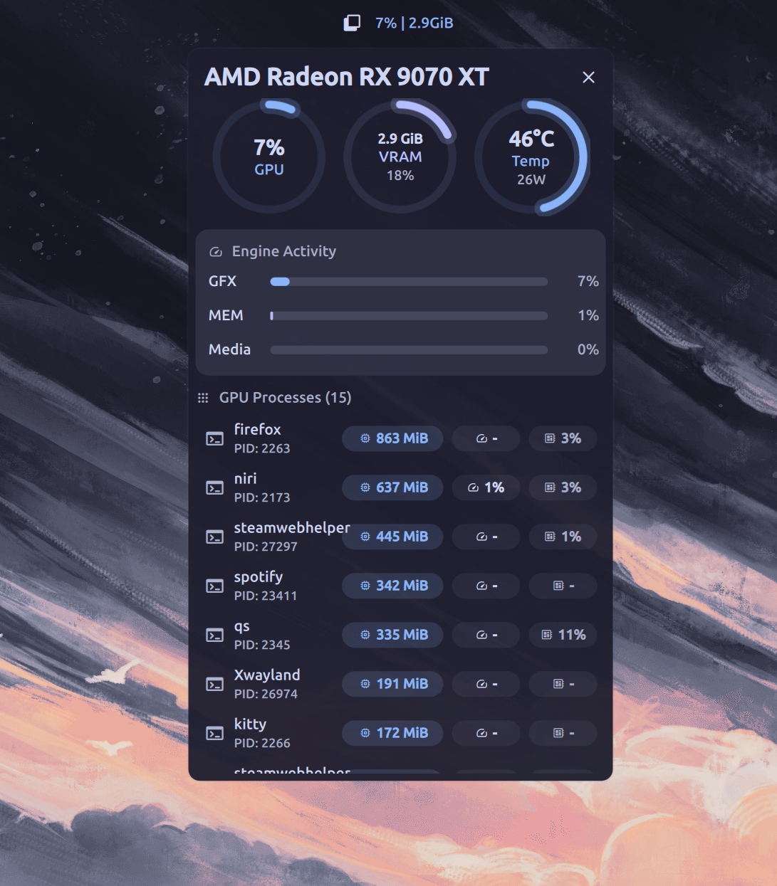 Monitor AMD GPU usage, VRAM, temperature, power consumption and process usage.