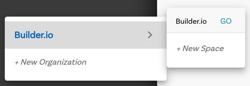 - Hover over Builder.io and choose + New Space.