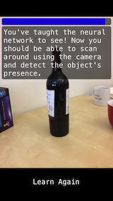 This shows how you can use a custom prediction model that you've built using the LearningExample sample code. I've included the simple 'wine_bottle_predictor.txt' that I quickly trained on a bottle of wine, you should be able to run it yourself and see the results of that model's prediction on your own images.