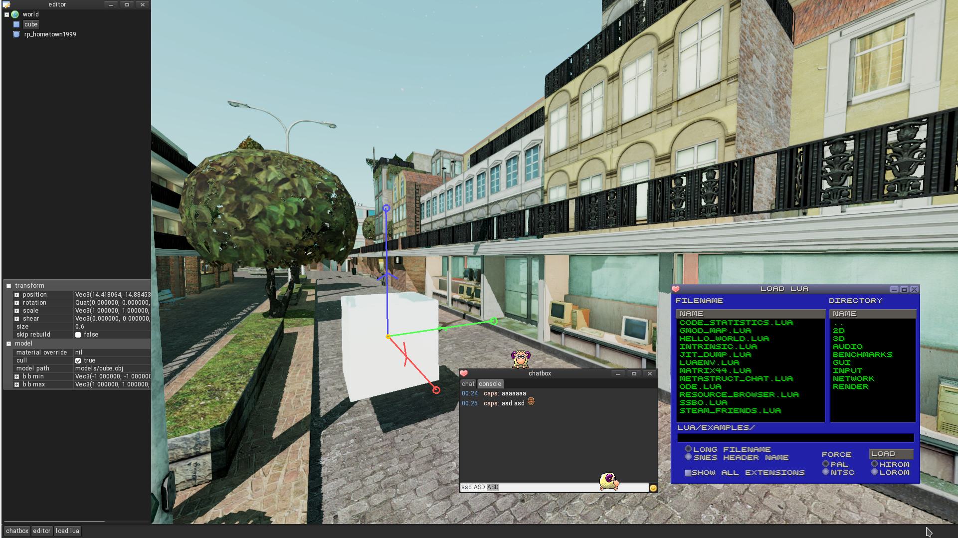 The game folder contains very high level scripts such as Löve2D implemented in goluwa, GarrysMod Lua implemented in goluwa, chatsounds, chatbox, scoreboard, player movement, etc.