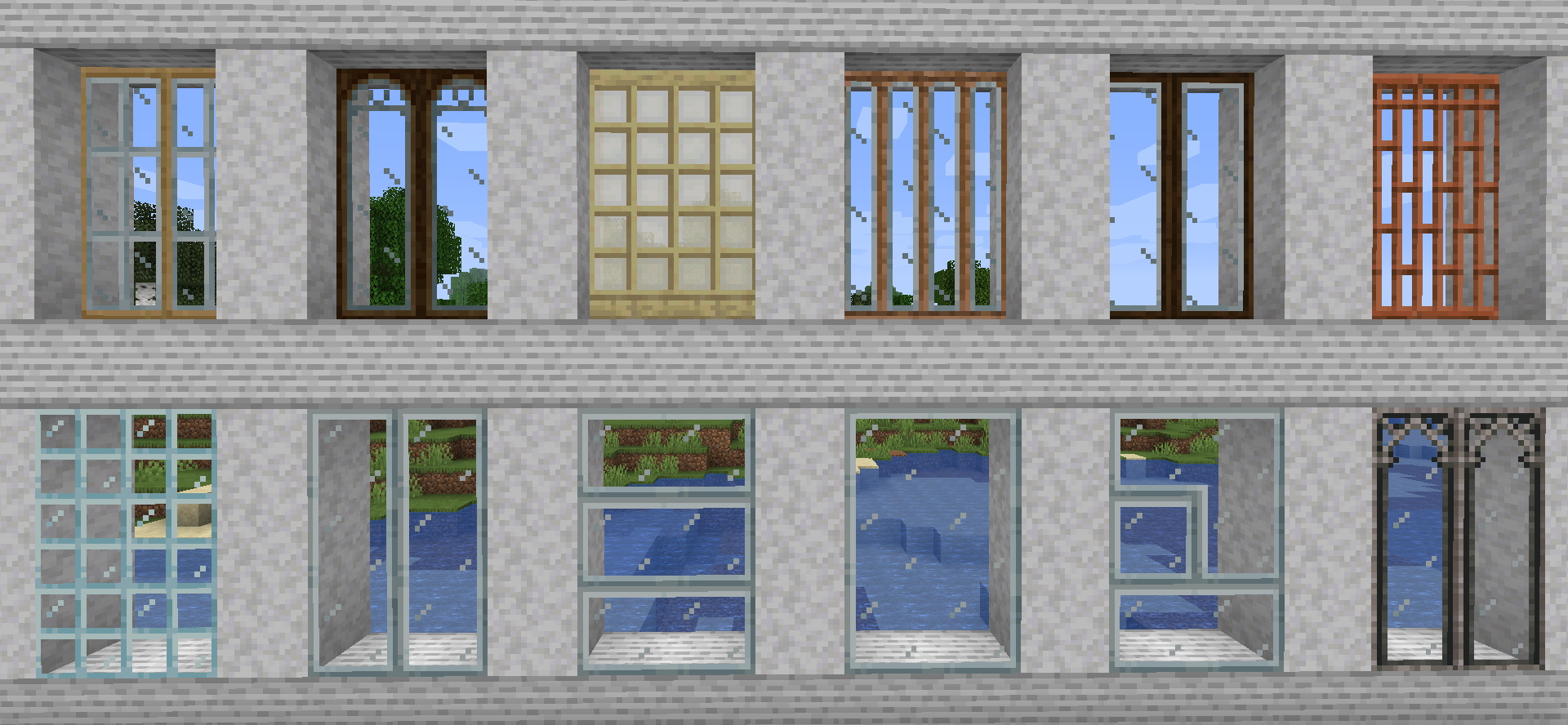The stone variants can be found in the world, generating in massive deposits by default. They can be crafted in textured variants and stairs, slabs, etc. as usual and sometimes with the help of a Stonecutter or the Mechanical Saw.