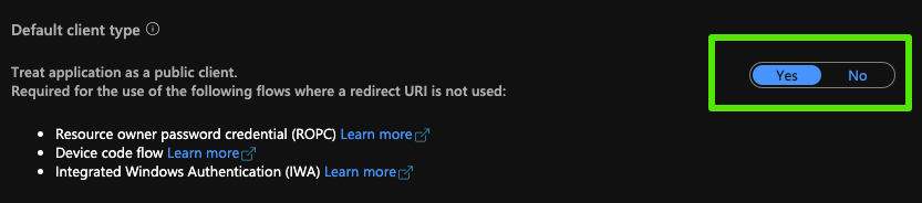 When creating your own Azure Active Direction application, under the authentication section, you need the configure it to be a public application: