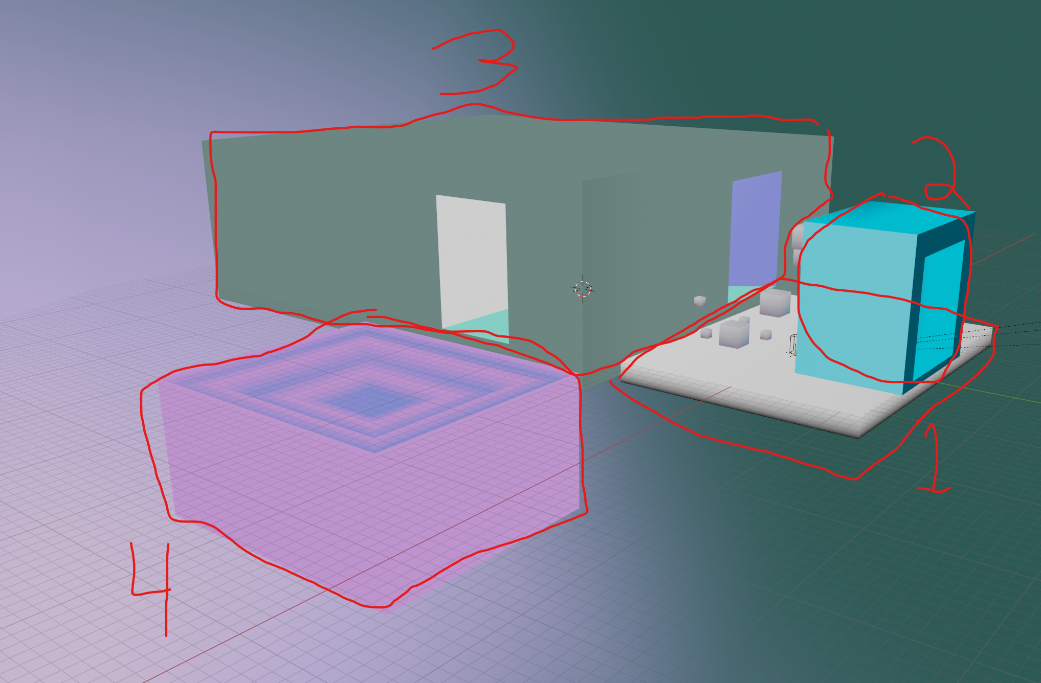 Since room 3 is transitional, it renders the entirety of room 1 and room 4
