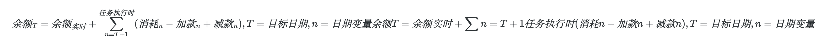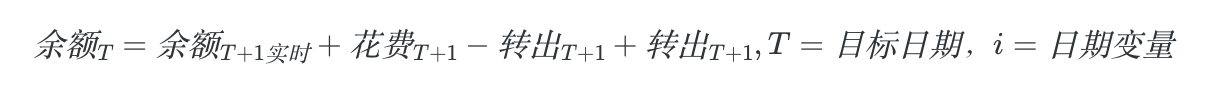 解释一下公式:目标日期的日结余额 = 实时的余额加上目标日期之后发生的花费和转出,再减掉目标日期发生之后的转入。