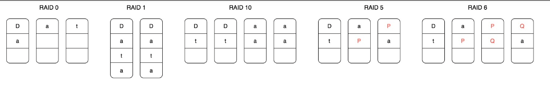 - 提高读写速度,解决IO瓶颈:进行数据读写时,对多个硬盘进行并行读写