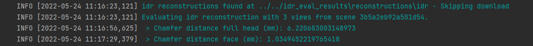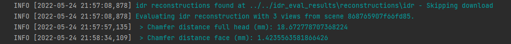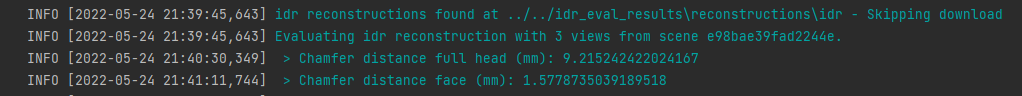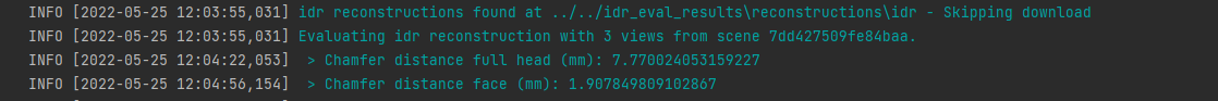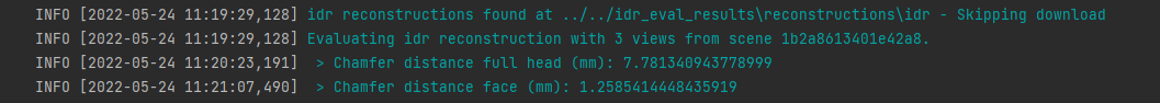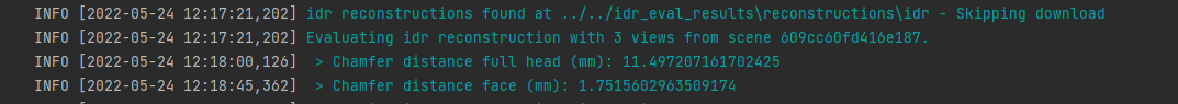 This face/head metric was first introduced in the H3D-Net paper to compare the performance between H3D-Net and IDR methods. The lower the value the better the result.
