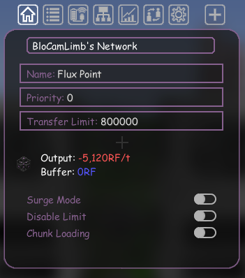 Flux Networks Homepage CurseForge For any suggestions or bugs, open a new issue labelled with [Suggestion] or [Bug] License Flux Networks Copyright (C) 2017-2021 SonarSonic, BloCamLimb et al. GUI Designs and GUI Resources Copyright (C) 2019-2021 BloCamLimb. All rights reserved. Wiki GitHub Wiki New GUI