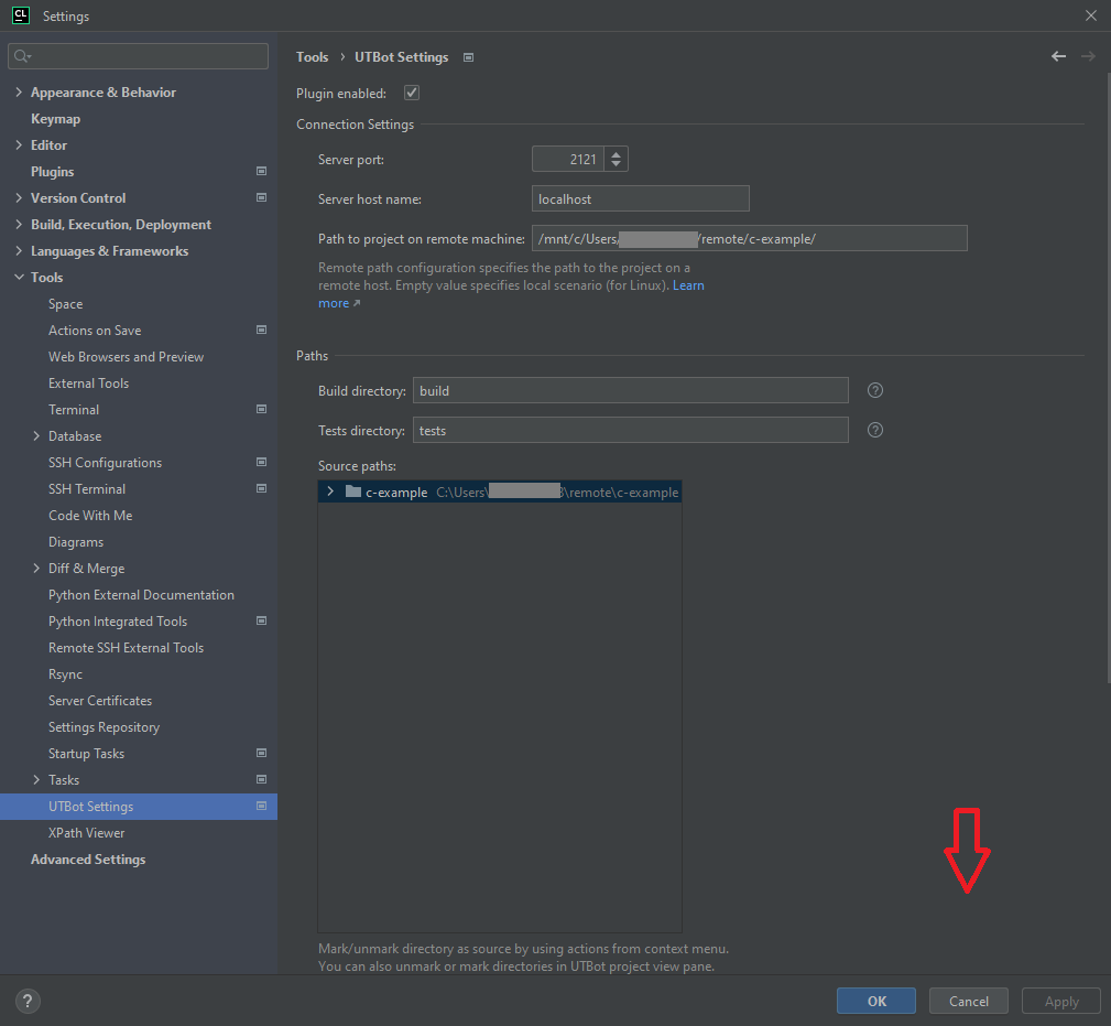 Path to project on remote machine: | /home/utbot/remote/c-example |