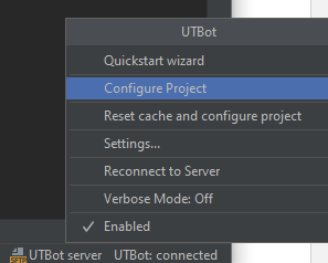 You can also configure the project later: in the Status Bar (lower right), select the UTBot widget and choose Configure Project.