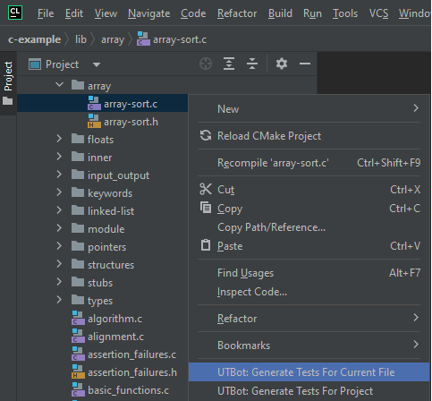 - UTBot: Generate Tests For Current File (for a selected file only)
