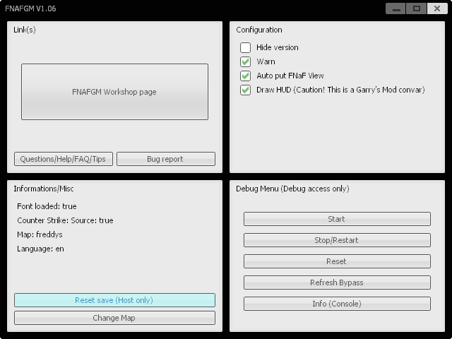 fnafgm_sgvsa 1 or press F1 and click on "Toggle SGvsA".