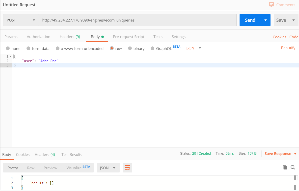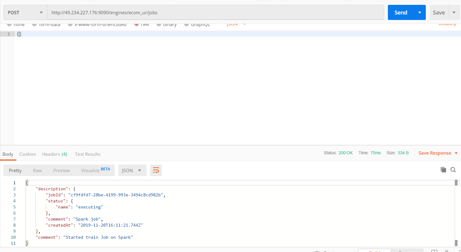 After the data was successfully entered by post and the training was activated, the recommendation engine did not give me feedback.