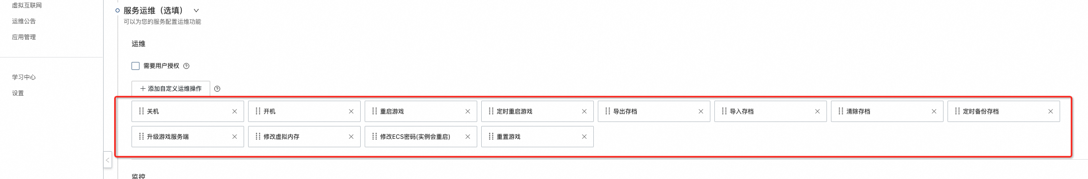 完成运维项填写后,计算巢还提供了一些其他功能,例如监控、日志等,这些配置您可按需自定义。