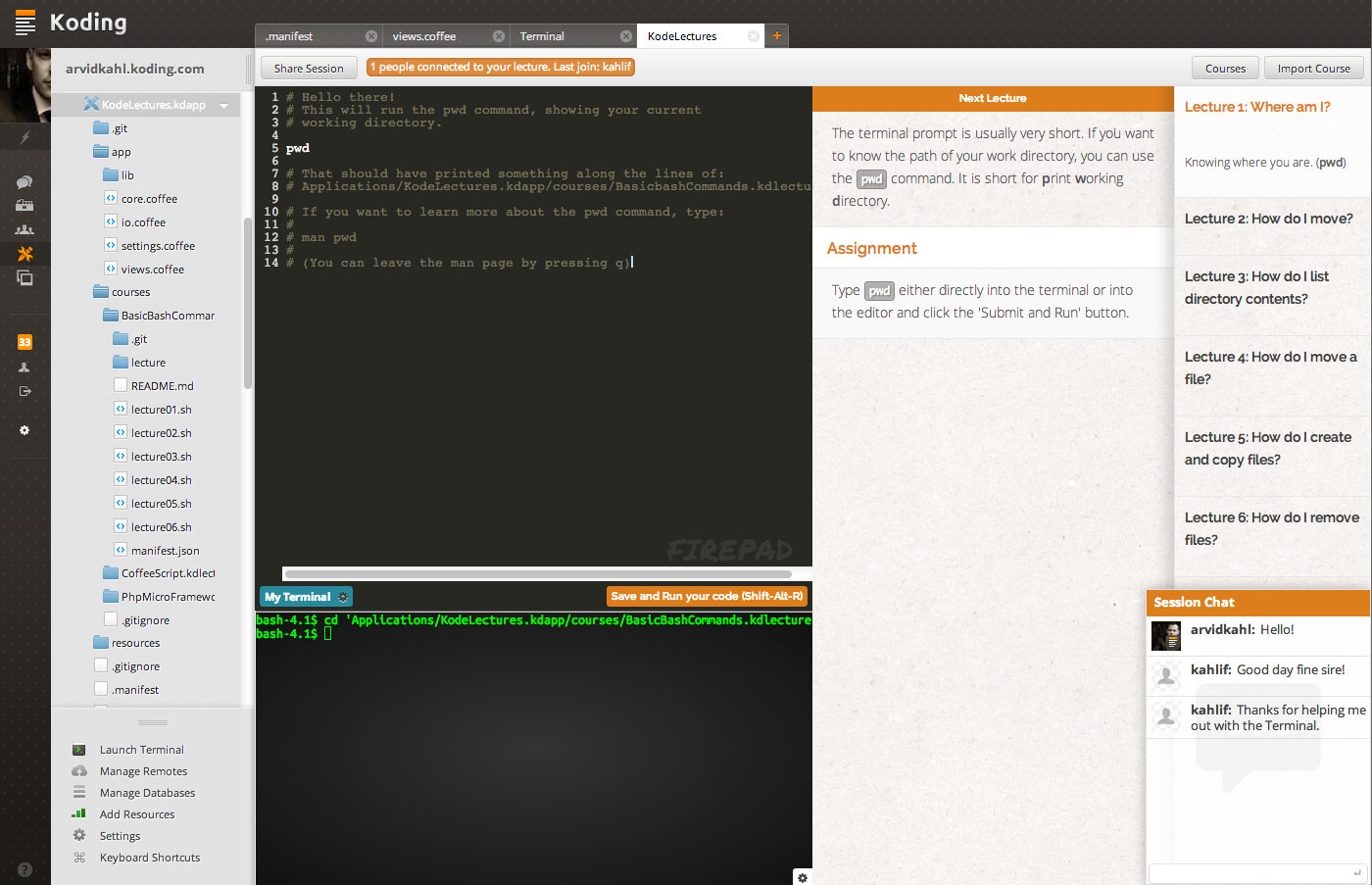 If you are interested in adding your own lectures to this app, please check out CoffeeScript Example, Bash Example and PHP Example, fork those and drop me a line somewhere.