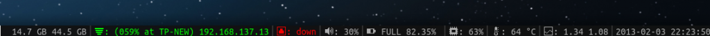 which is later displayed by dzen. Here is a screenshot of the bar generated from