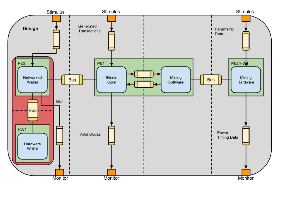 This project explores some of the technological challenges related to cryptocurrencies, using Electronic System Level (ESL) modeling techniques, focusing on speed and power estimation to assist developers in making decisions regarding component selection. The project describes the modeling of a complete mining "node", involving multiple processing elements and specialized hardware. Speed and power estimation techniques are employed to compare several devices to host a hashing algorithm, including general purpose processors, FPGAs, and ASICs.