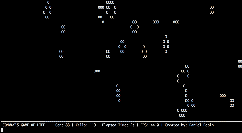 - rand_max (default=5): Chances of a cell being alive. Lower is more alive cells
