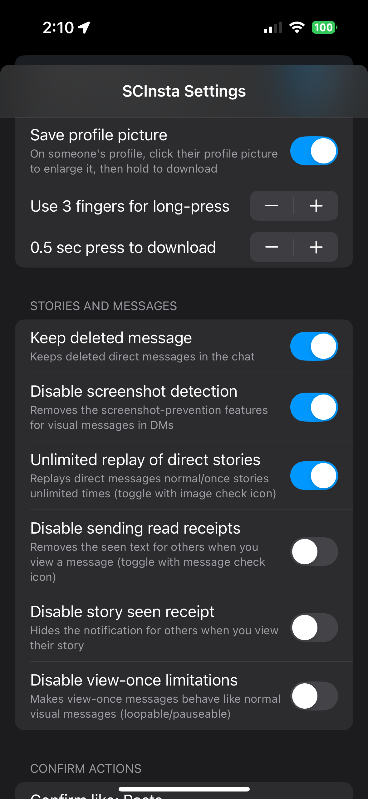 ⚙️ To modify SCInsta's settings, check out this page for help
