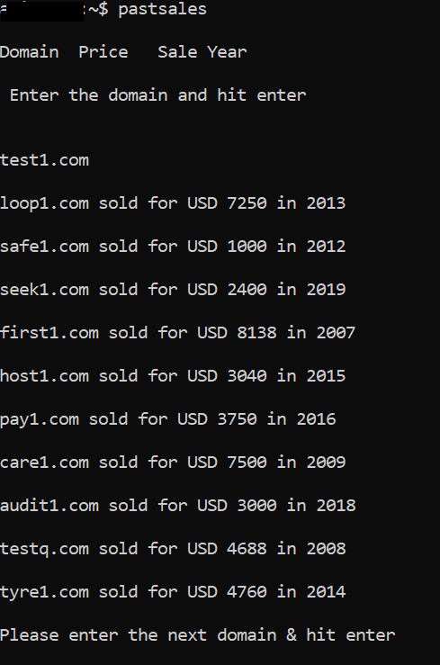 pastsalesthen enter the domain you would like to find past sales & similar sales of. - Use