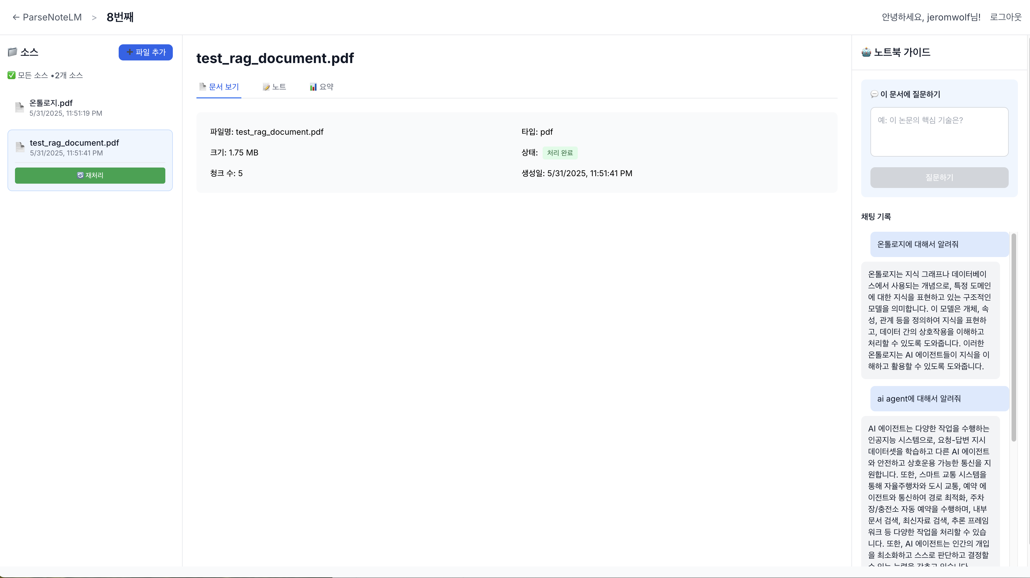 ParseNoteLM은 대학생과 대학원생을 위한 완전한 AI 기반 문서 분석 서비스입니다. PDF, TXT 파일을 업로드하여 AI가 자동으로 분석하고, RAG(Retrieval-Augmented Generation) 기술을 통해 문서 내용에 대한 정확한 질의응답을 제공합니다.
