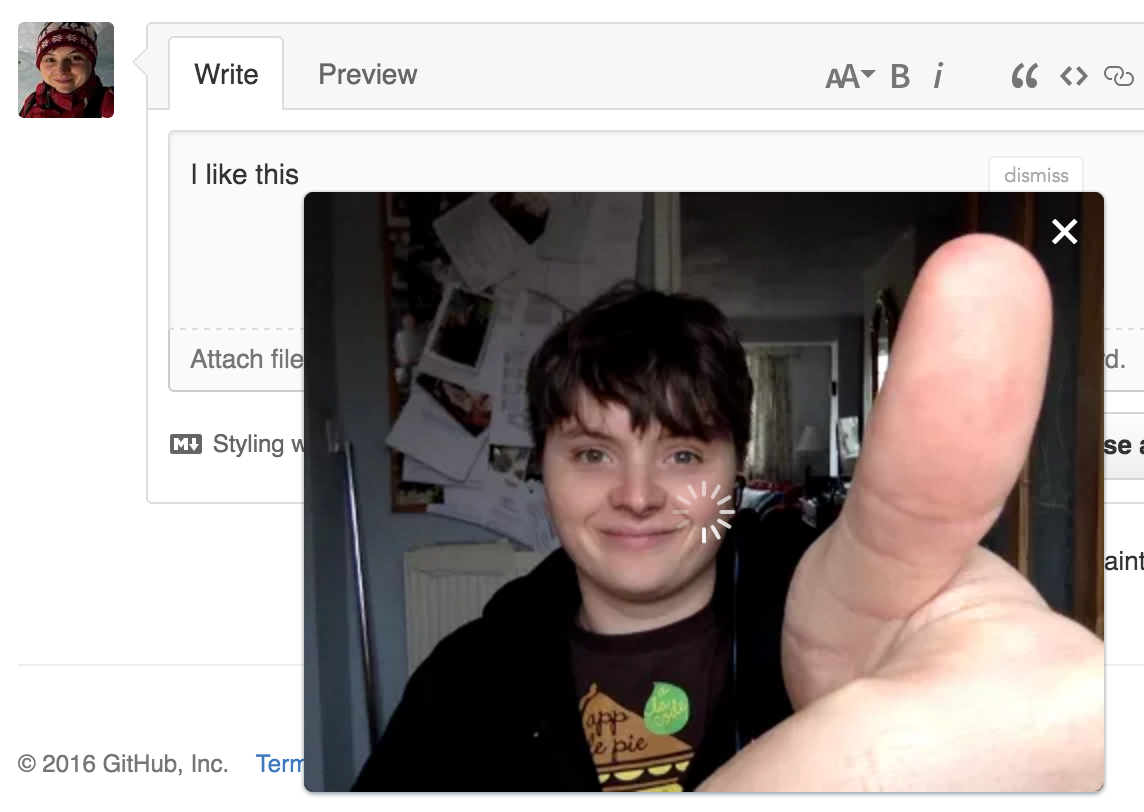 I see index.js:26 POST https://api.imgur.com/3/image 400 (Bad Request) in the console and a never ending pinwheel on my selfie :-(