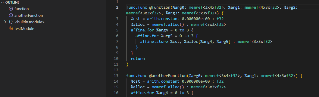 The MLIR extension provides language IDE features for MLIR related languages: MLIR, PDLL, and TableGen