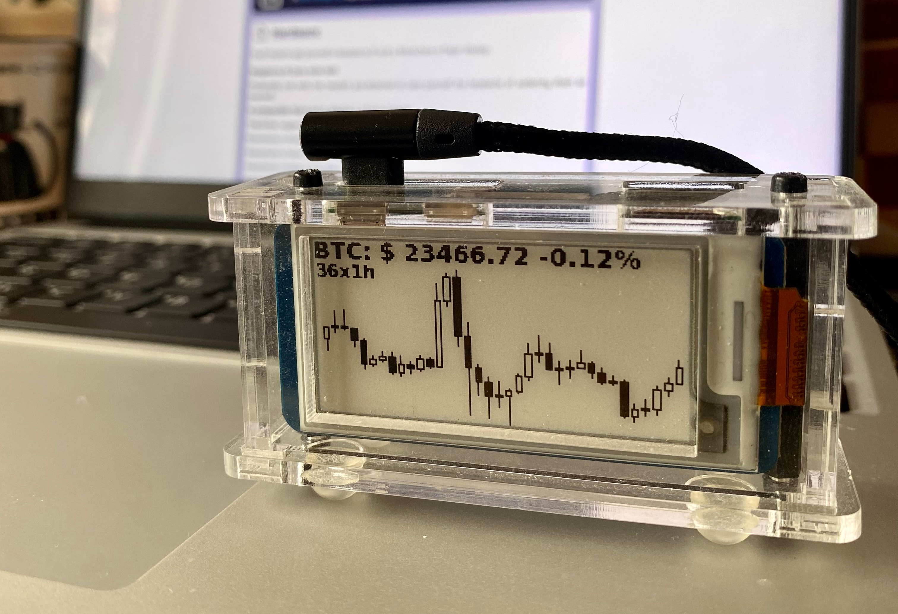 tinyticker uses a Raspberry Pi zero W and a small ePaper display to periodically display a stock or crypto chart.