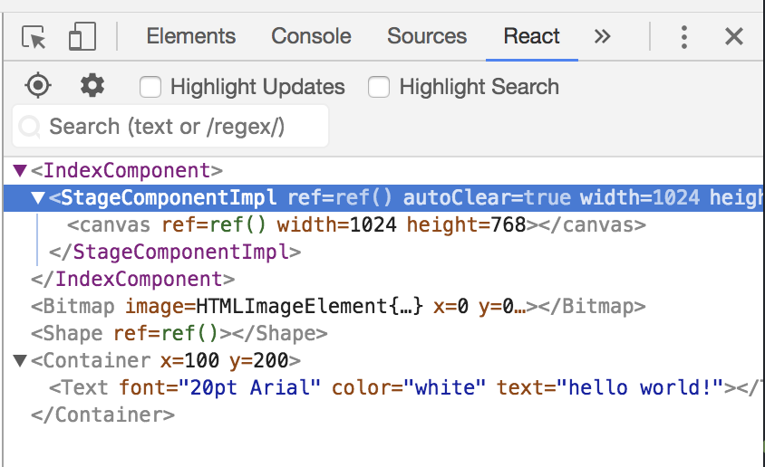 You can see EaselJS component tree in your React Developer Tools