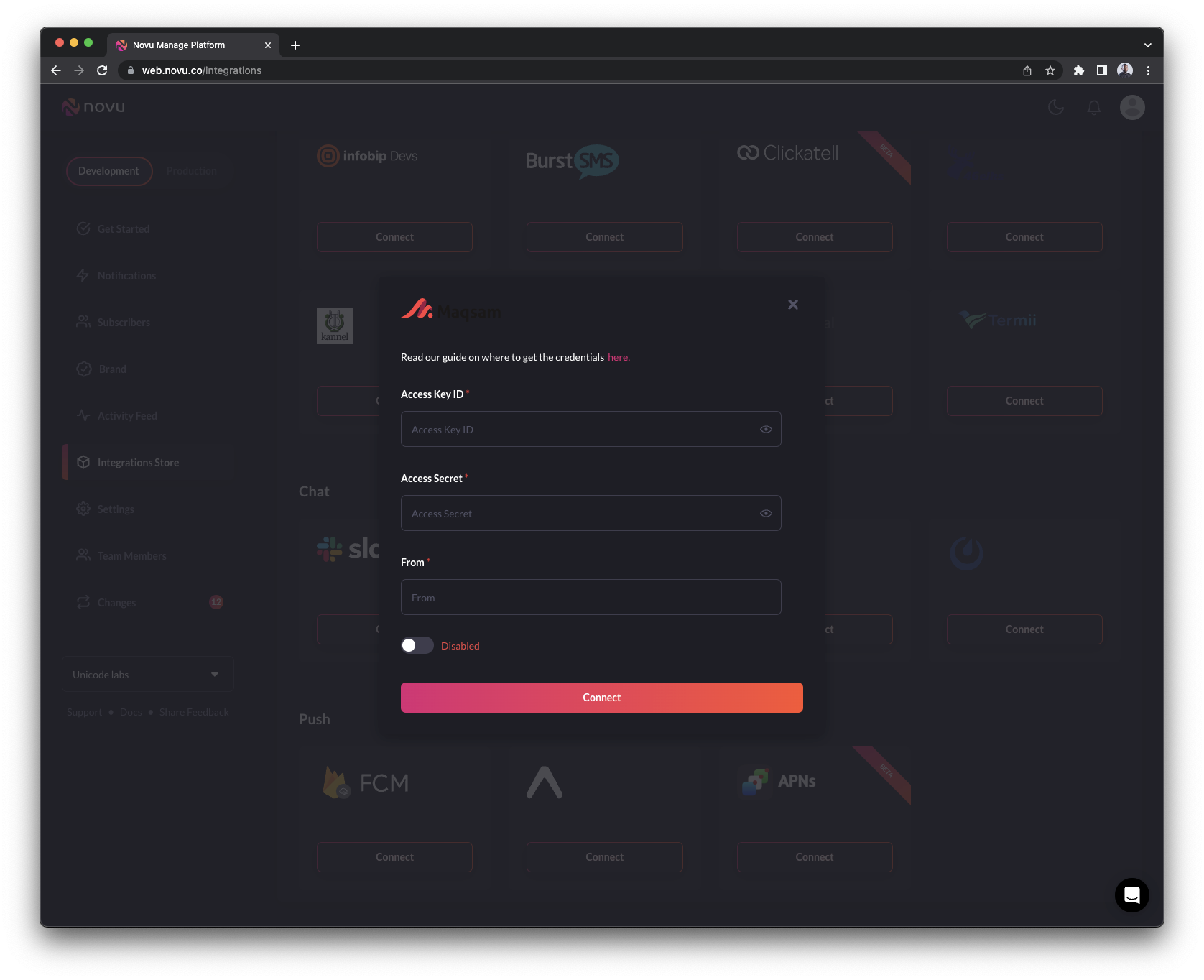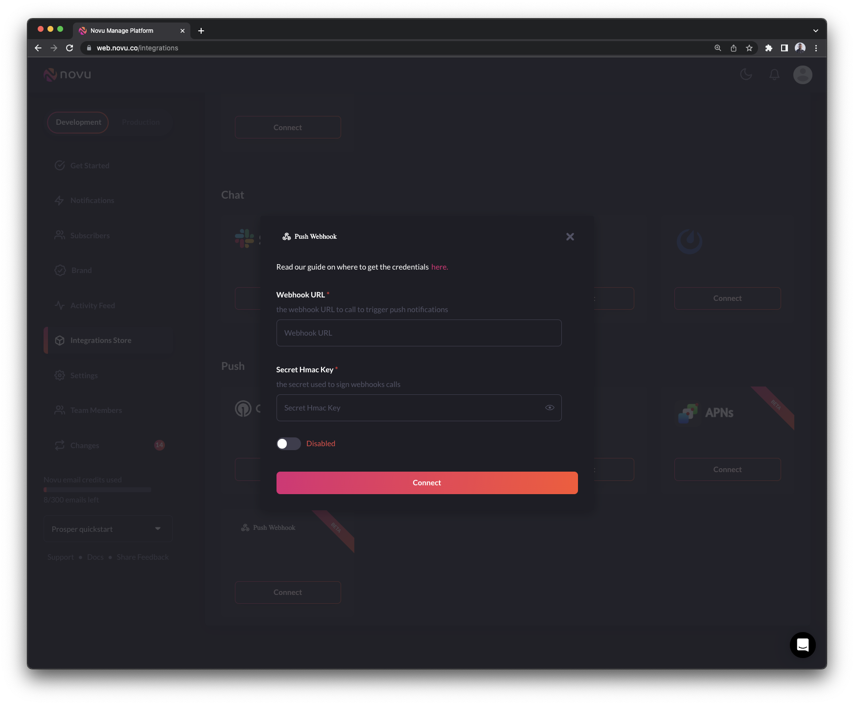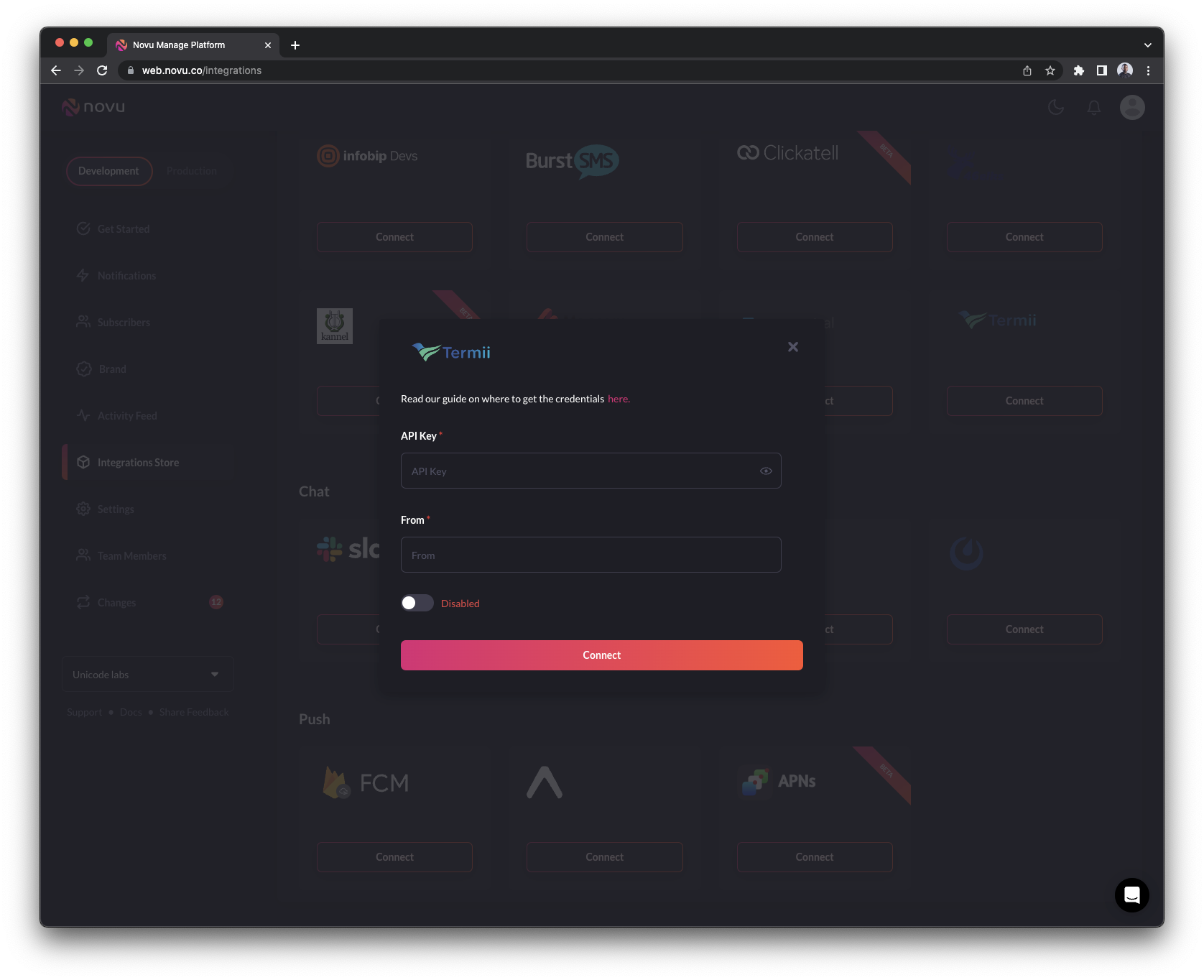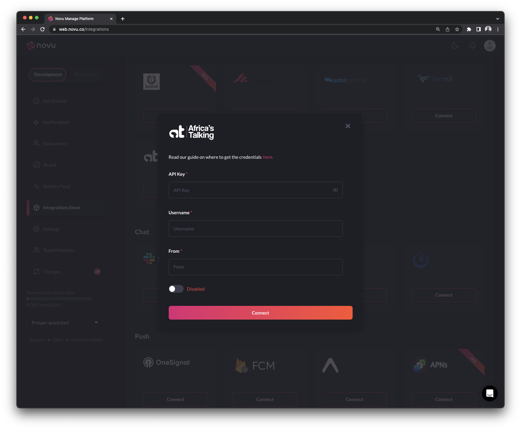 The Integration Store houses the providers for all the channels: Email, SMS, Chat and Push. The In-App channel is now part of the integration store.