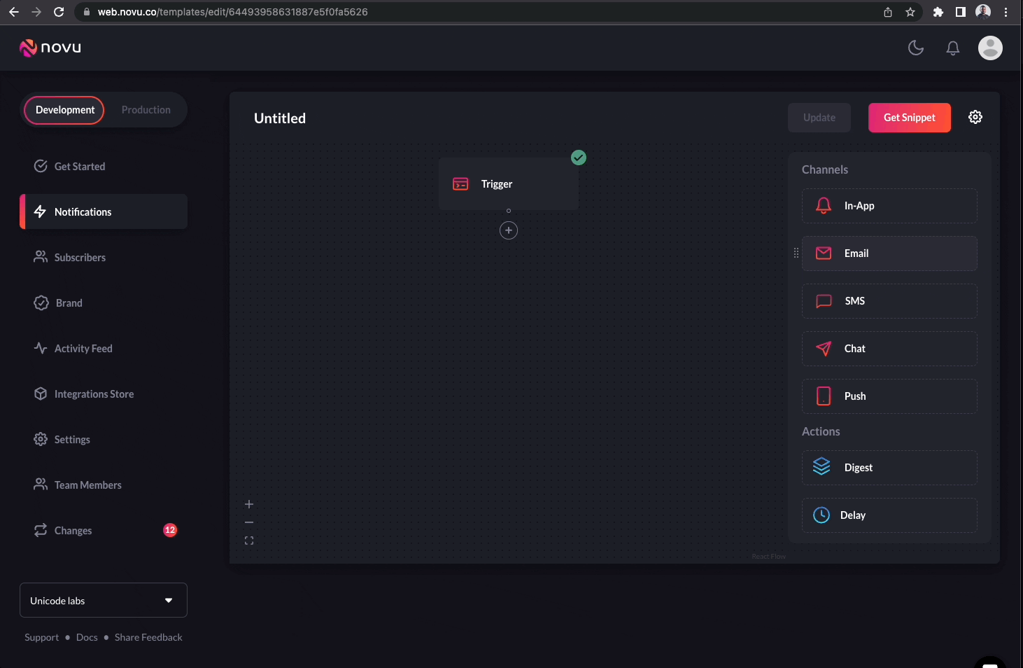 You can simply choose a sample notification workflow from the template store, modify it and be ready to trigger a notification in record time!