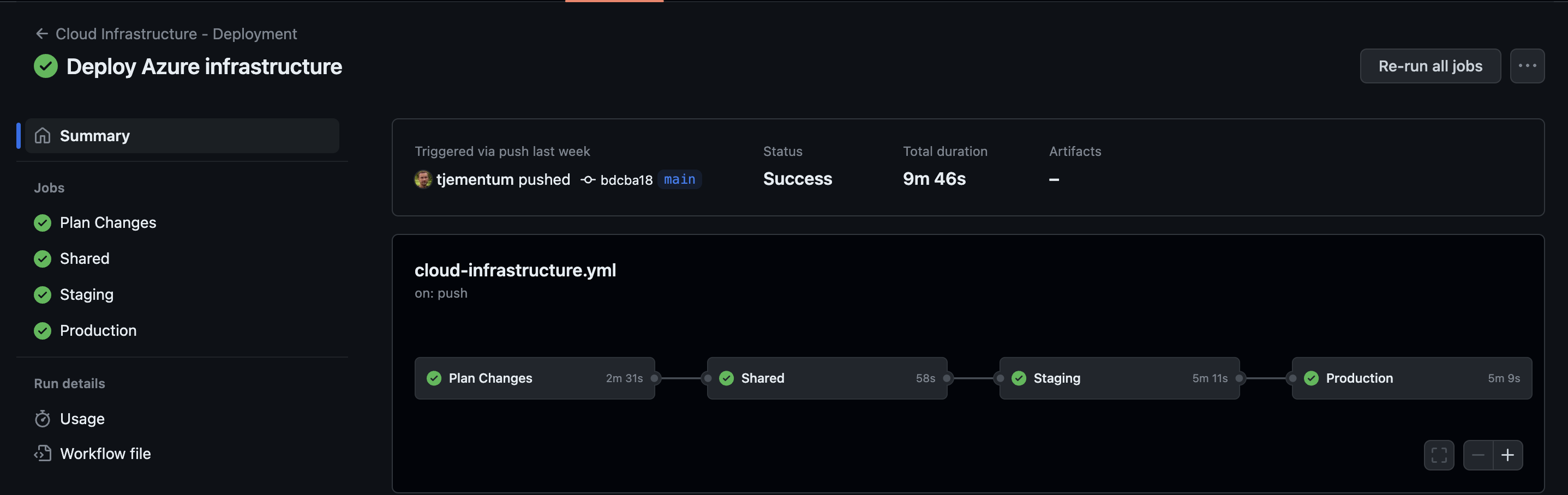 This is how it looks when GitHub workflows has deployed Azure Infrastructure: