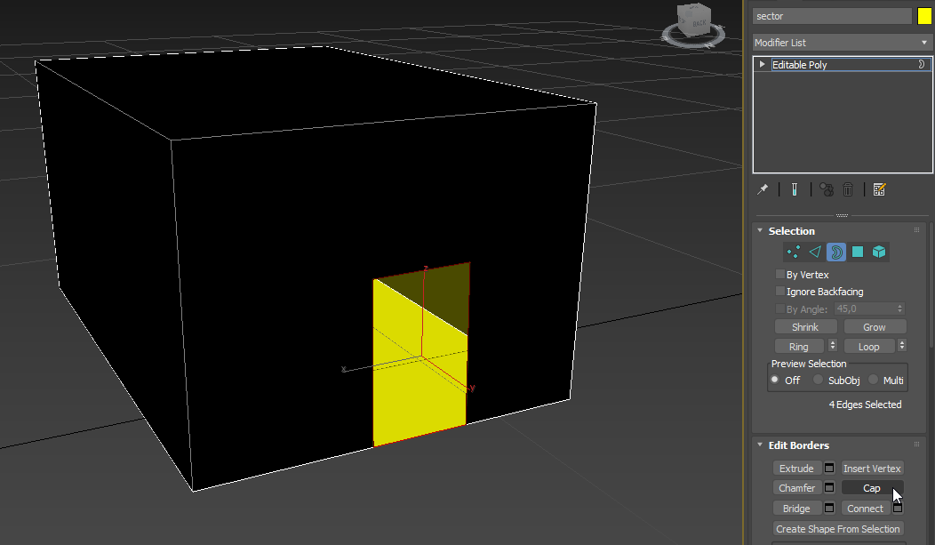 We should now fill the hole in the sector. Select the border where the hole is and Cap it.