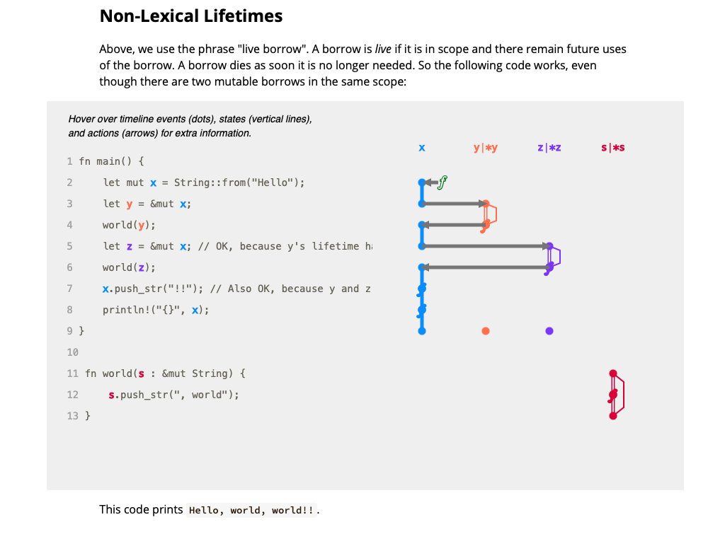 See Borrowing: Non-Lexical Lifetimes visualization. Line 5 does not display the full comment