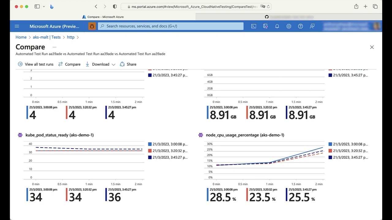 The test will take around 1 hour to complete. Once this is completed, you can go to Azure Load Testing portal to compare configurations.