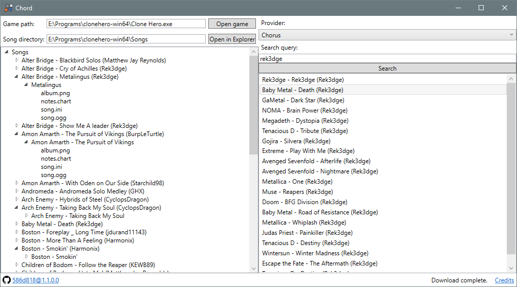 The Clone Hero Organized Repository Downloader manages and simplifies downloading and extraction of songs.