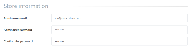 - Admin user password: Password of the Shop Admin