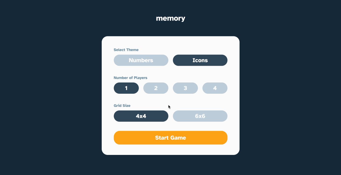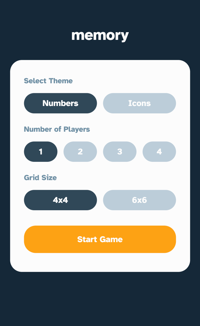This is a solution to the Memory game challenge on Frontend Mentor. Frontend Mentor challenges help you improve your coding skills by building realistic projects.