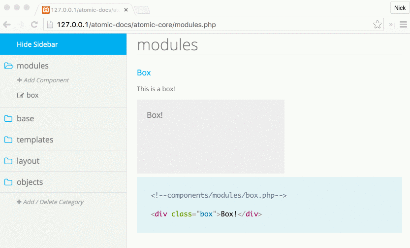 - Go to http://localhost/atomic-docs/atomic-core/index.php and get started.